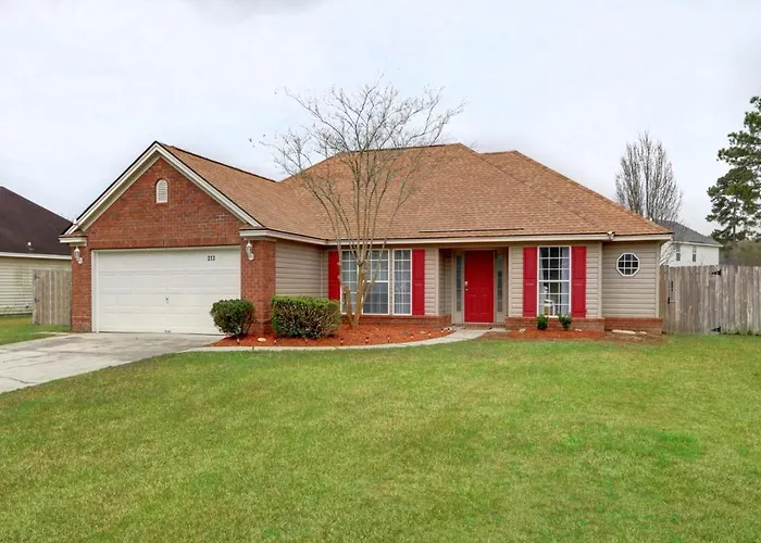 The 4-bedroom Pooler Travelers Retreat V - Entire House - Villa is set in Savannah, at a 7 km distance from Surf Lagoon Water Park and about a 10-minute ride from Tom Triplett Community Park. Located in the Pooler district, the Savannah villa provides guests with a full kitchen with a microwave oven, refrigerators and kitchenware.